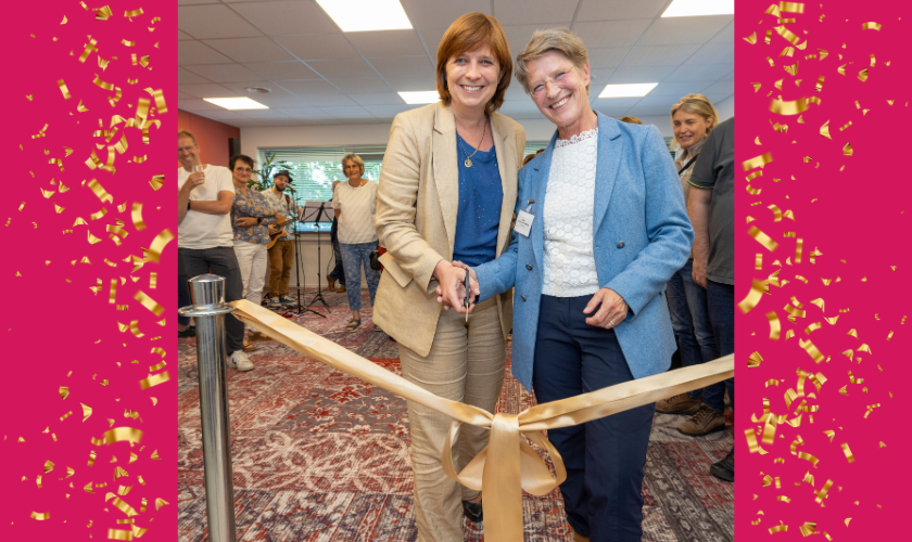 Het lint werd vervolgens met een grote glimlach doorgeknipt door Carin en Nienke. Een symbolisch én feestelijk moment.